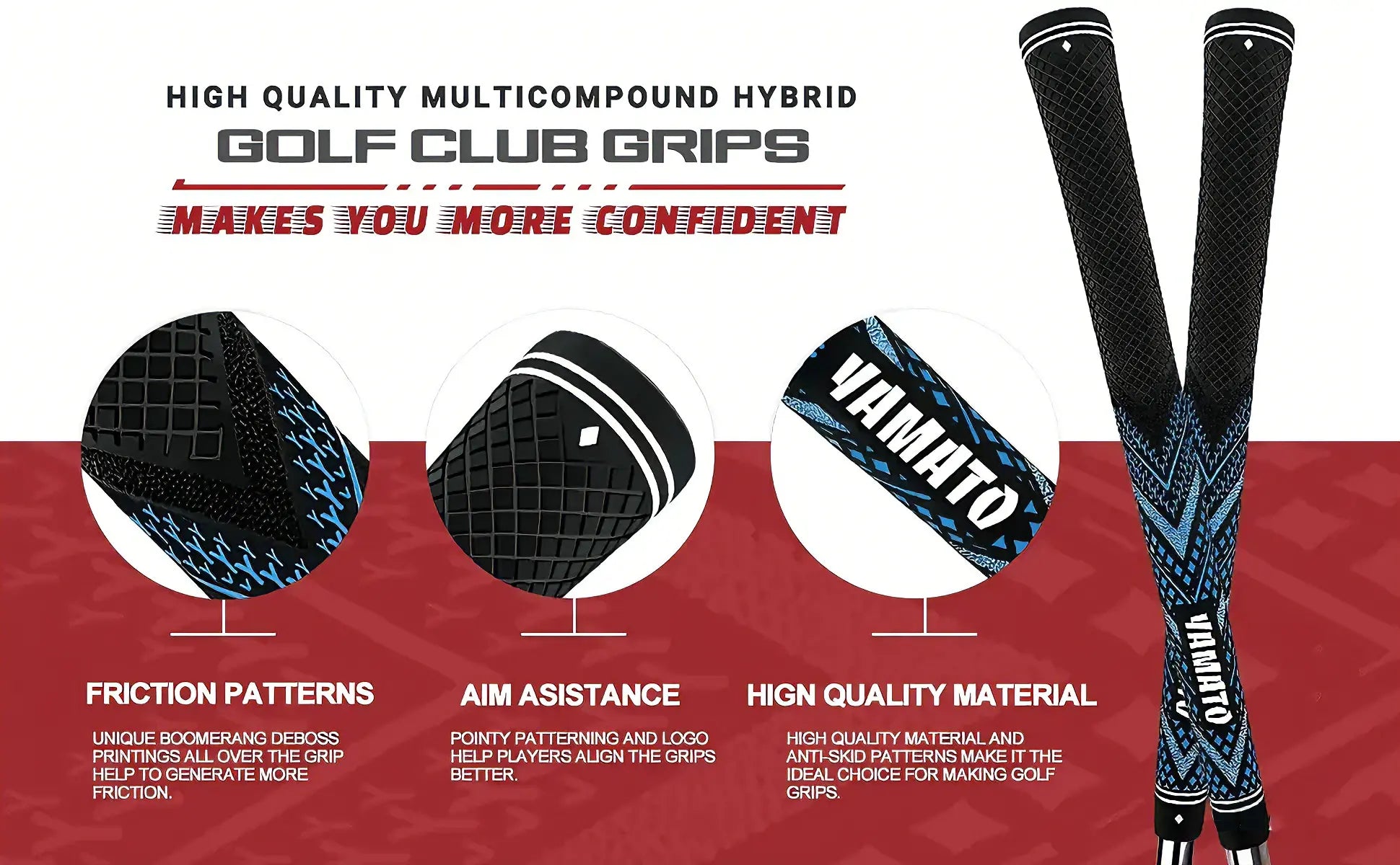 Innovative Non-Slip Rubber – Constructed from Yamato’s proprietary rubber compound for secure grip and full swing control.