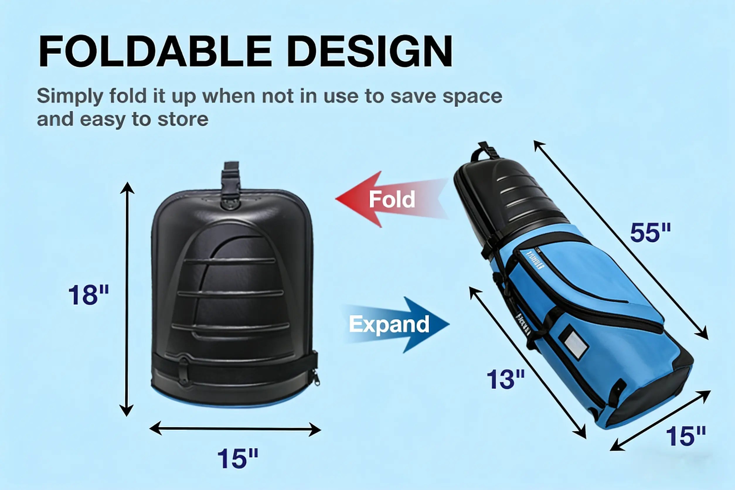 A: Folded dimensions are approx. 18″ x 15″ x 13″. Compared to the expanded 55-inch length, overall volume is reduced by ~75%, allowing easy storage in most spaces.
