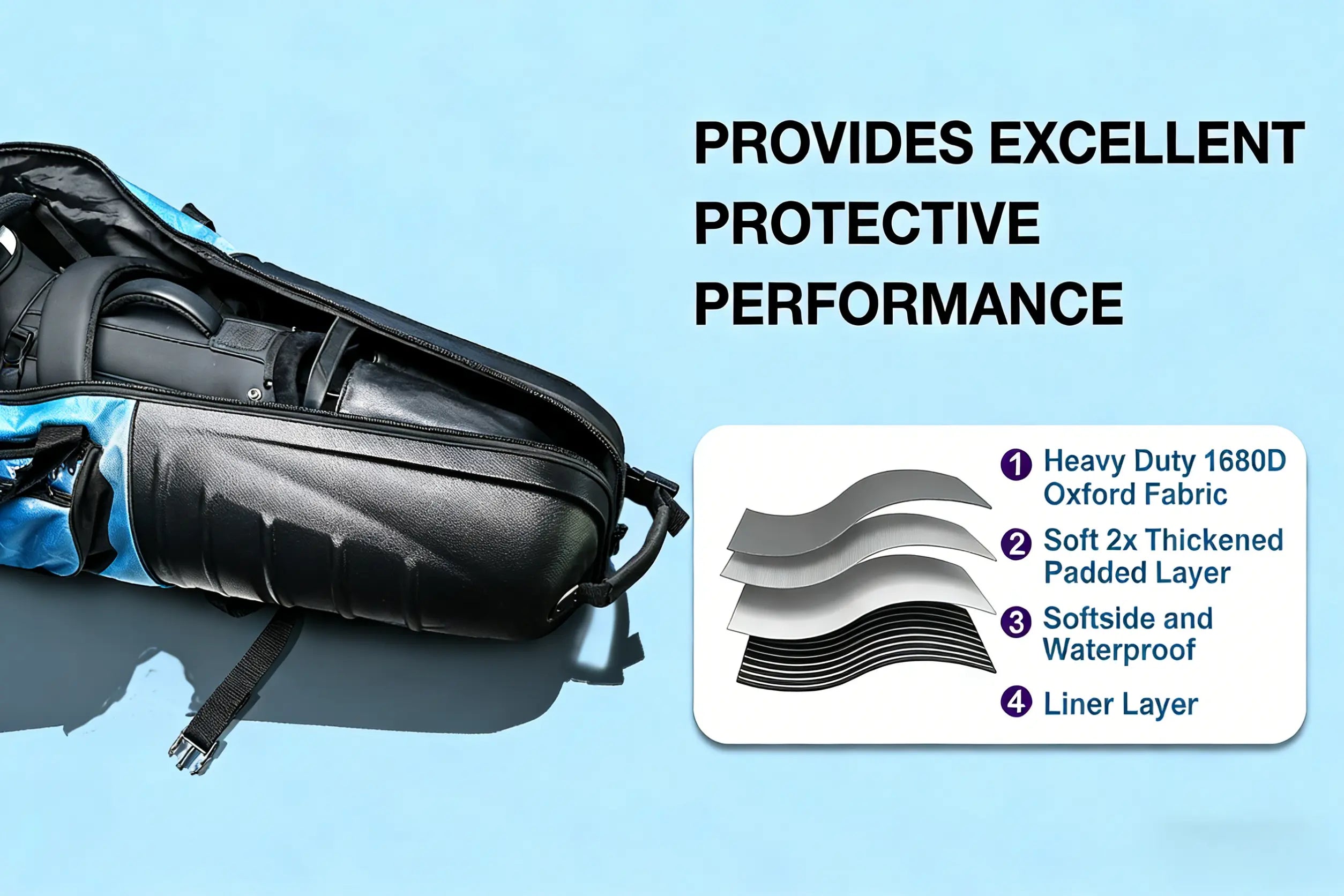 It unites a hard shell's strength with folding convenience. The ABS hard top shields clubheads, while the waterproof Oxford fabric body ensures durability. Its revolutionary design folds down easily, reducing volume by ~75%, and stores neatly in closets, car trunks, or under beds—solving storage hassles for good.