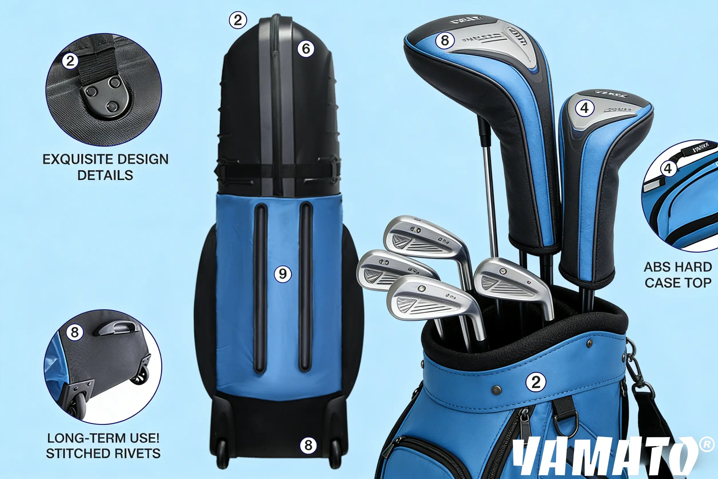 - Hard Shell Protection – ABS molded top keeps your club heads safe from crushing or impact during travel.