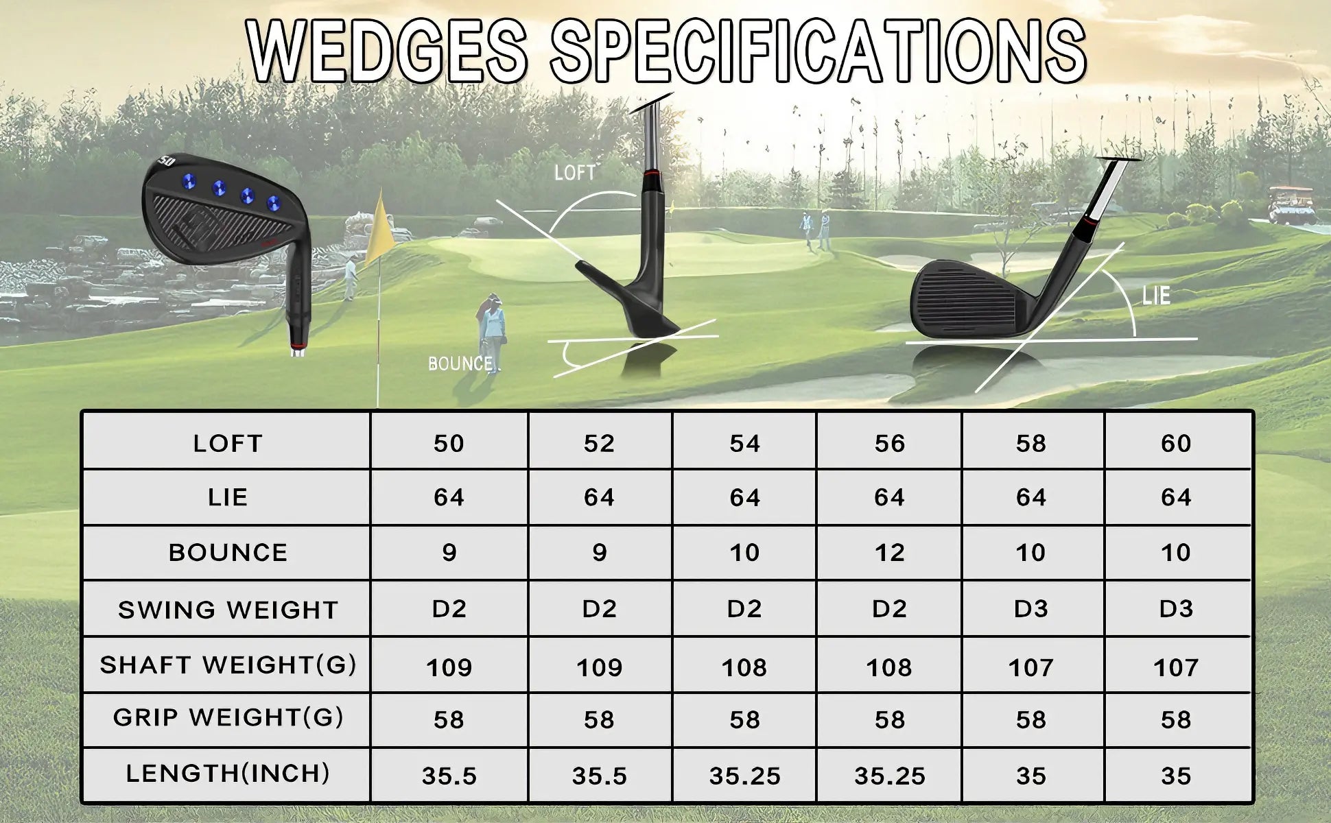 - 52°-56° Set: The Foundational Pair. Ideal if you need to cover the gap between your pitching wedge and a sand wedge. Perfect for building a reliable short-game foundation.